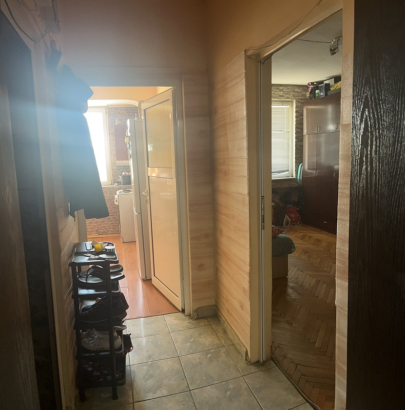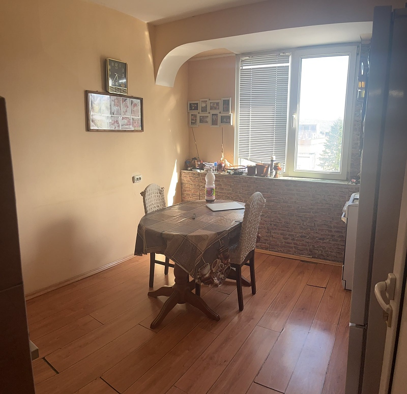 ГАРСОНИЕРА - Стария пазар, тухла, без ТЕЦ, ет.4/8, 38 кв.м., изток, вътрешен ап., PVC дограма, състои се от кухня, стая - спалня и сан.възел, кухня и стая - стени - тапети, кухня - под - ламиниран паркет, стая - естествен паркет, коридор - теракота, сан.възел - фаянс и теракота, мазе