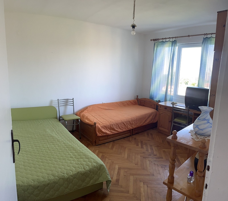 ГАРСОНИЕРА ПОД НАЕМ - пл.Левски, тухла, 45 кв.м., състои се от стая, кухня, сервизно помещение (баня и тоалетна) и тераса, под - стая (спалня) и кухня - паркет, коридор - ламиниран паркет, санитарно помещение - фаянс и теракота, стени - латекс, пълно обзавеждане, ел.уреди - печка, хладилник, пералня, TV, при подписване на договор за наем се плаща - депозит - 1 месечен наем и 1 месечен наем