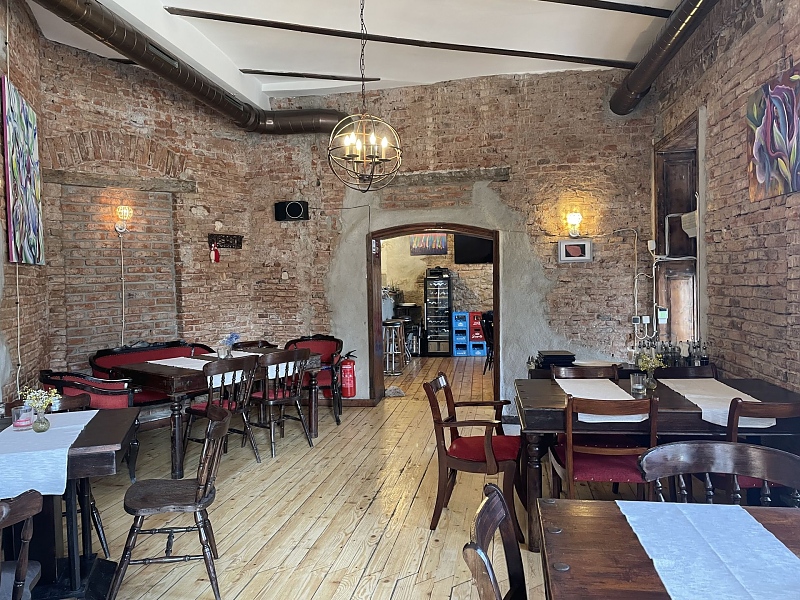 ЗАВЕДЕНИЕ - Идеален център, 120 кв.м., представляващо партерен етаж от жилищна сграда със смесено предназначение, паметник на културата, разрешение за ползване за Бистро - Клуб ресторант, сградата е строена около 1930 г., изградена е по монолитен начин, външните зидове са с дебелина 60 см, светлата височина е 3.55 м, конструкцията на пода е гредоред и на пода над партера е пруски свод, извършено е укрепване на пода над партера и на други части с метална конструкция, състои се от търговска зала от две помещения за клиенти с площ 36.00 и 15.60 кв.м. и предвидени за 25 седящи места, бар с отвор към кухня - 6 кв.м. и санитарен възел, външна дограма - дървена, под - зали за клиенти - дюшеме, стени - видими тухли, под и стени - кухня и санитарен възел - теракота и фаянс, отопление и охлаждане с 2 климатика, изградена нова аспирация и вентилация на кухня и зала, в кухнята се използва електричество и газ, пълно вътрешно обзавеждане - зали - маси и столове, 2 телевизора, бар с оборудване, кухня - кухненски шкафове и мивки – нови, конвектомат, фурна, газови котлони, хладилници - 2 малки, 1 голям и винен, фризери – 1 голям и 1 малък, микровълнова печка, кухненски робот, миялна, СОТ и камери, ползва се външна площ за лятна градина с 25 места с маси и столове от ковано желязо, заведението е с история от 1996 г., състоянието и местоположението му са предпоставка за добра посещаемост и доходи, отдадено под наем