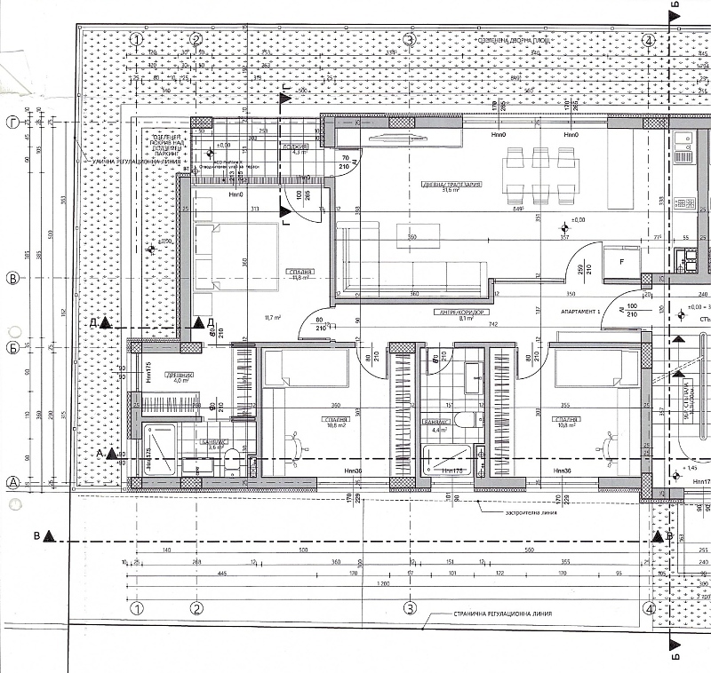 ЧЕТИРИСТАЕН с ПОДЗЕМНО ПАРКОМЯСТО - Централна част, сградата е в начален етап на строителство, разрешение за строеж от м.10.2025 г., изградена фундаментна плоча, очакван груб строеж до края на м.09.2026 г. и въвеждане в експлоатация на сградата до края на м.11.2027 г., ап., който се продава е със ЗП - 106 кв.м., състои се от дневна/трапезария и кухненска част - общо помещение, 3 спални, 2 бани с WC - общо помещение, от които едната баня с WC и дрешник са към една от спалните, 1 тераса, шпакловка и замазка, инсталации на тапи, предвидено отопление и охлаждане - климатици, възможност за захранване с газ, входна блиндирана врата, PVC дограма - 6 камерна, цвят - дъб, напълно завършени общи части - по проект, складово помещение - 10.30 кв.м., подземно паркомясто - 16.20 кв.м., ид.части от общи части и от поз.имот, цената се плаща на 4-ри вноски: Аванс - 40 % при подписване на предварителен договор, Груб строеж /Акт 14/ - 30 %, Акт 15 - 20 % и Въвеждане в експлоатация /Акт 16/ - 10 % или индивидуална схема на плащане, тих район, до парк, детска градина и в близост до хипермаркет