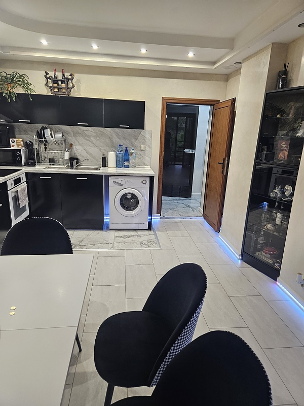 ЕТАЖ ОТ КЪЩА - Градска част, 2-ри етаж от 3-ри етажна кооперация и тавански етаж, тухла, плоча, ЗП - 73 кв.м., изток-юг-запад, състои се от кухня с трапезария, две спални и 2 тераси, под - стаи - ламиниран паркет, коридор - гранитогрес, стени - латекс и мазилка, санитарни помещения - фаянс и теракота, пълно обзавеждане, обща стълбищна клетка с останалите етажи, мазе - 33 кв.м., панорамна гледка