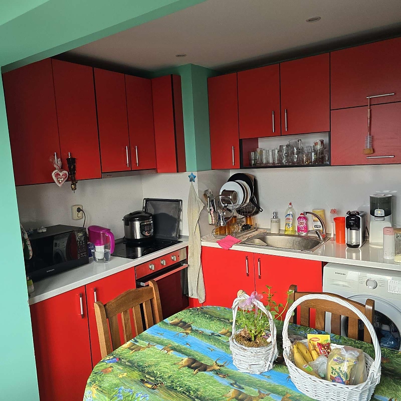 ДВУСТАЕН - Болницата, панел, климатик, 61 кв.м., ет.8/8, изток, вътрешен ап., без преход, външна изолация, PVC дограма, нови ВиК и ел. инсталации, състои се от кухня, дневна, спалня с тераса, общ санитарен възел (баня с тоалетна) - след ремонт, стени - тапети, частично обзавеждане, мазе, работещ асансьор, панорамна гледка
