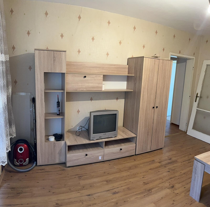 ДВУСТАЕН ПОД НАЕМ - Градска част, Автогара, ЕПК, 62 кв.м., ет.4, запад, непреходен, външна дограма PVC, състои се от кухня с тераса, остъклена с метална дограма, дневна с тераса, спалня с тераса, коридор и общ санитарен възел, дневна, спалня и коридор - под - ламиниран паркет, кухня - теракота, стени - кухня - латекс, дневна, спалня и коридор - тапети, сан.възел - фаянс и теракота, напълно обзаведен, асансьор