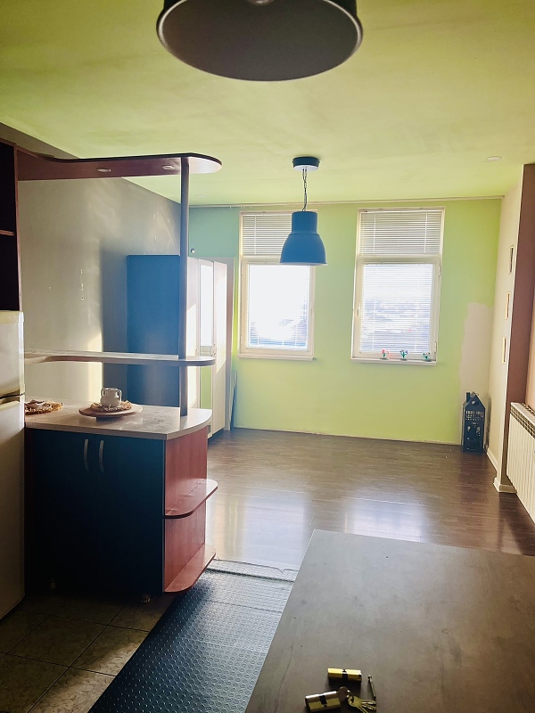 ДВУСТАЕН - Дъбника, ЕПК, 61 кв.м., ет.8/8, юг-север, вътрешен ап., без преход, PVC дограма, състои се от кухня с трапезария, спалня с тераса, детска, общ санитарен възел (баня с тоалетна) - фаянс и теракота, стени - латекс, частично обзавеждане, мазе, работещ асансьор
